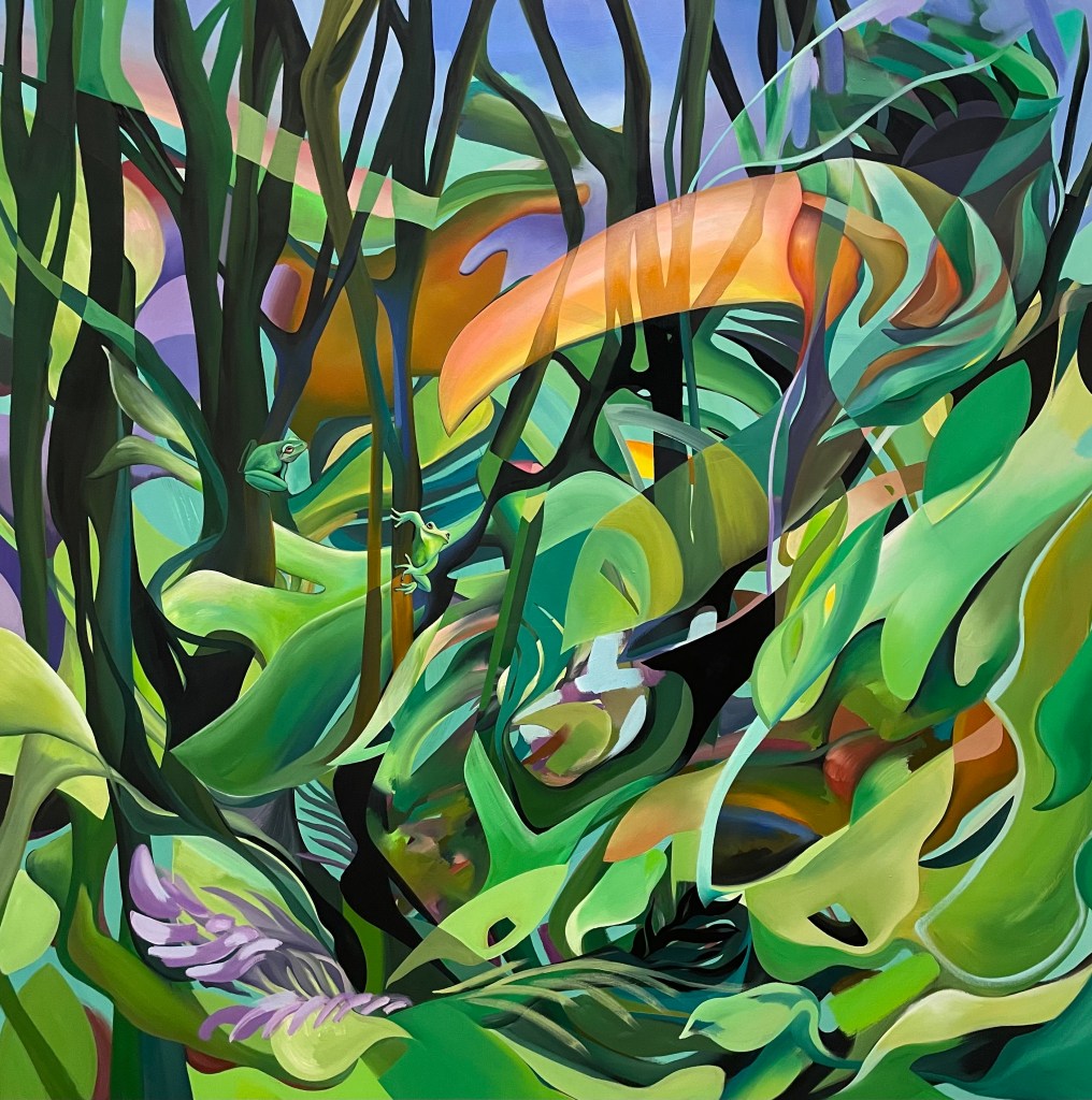 Afin de donner à voir l’importance d’une multiplicité de points de vue au sein de la crise climatique, notre groupe de peintres issu de la diversité désire questionner la domination du monde politique sur notre rapport au territoire. Dans une approche diversifiée et complémentaire, nous voulons montrer l’urgence de voir la nature autrement, que ce soit autrement qu’un bien immobilier affecté par l’offre et la demande du marché, qu’une source d’exploitation ou un lieu de pouvoir par exemple.